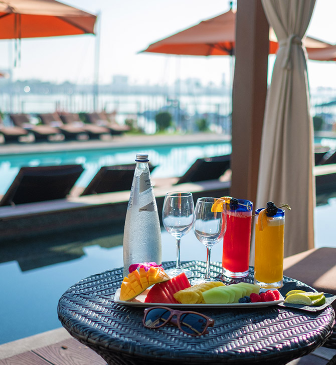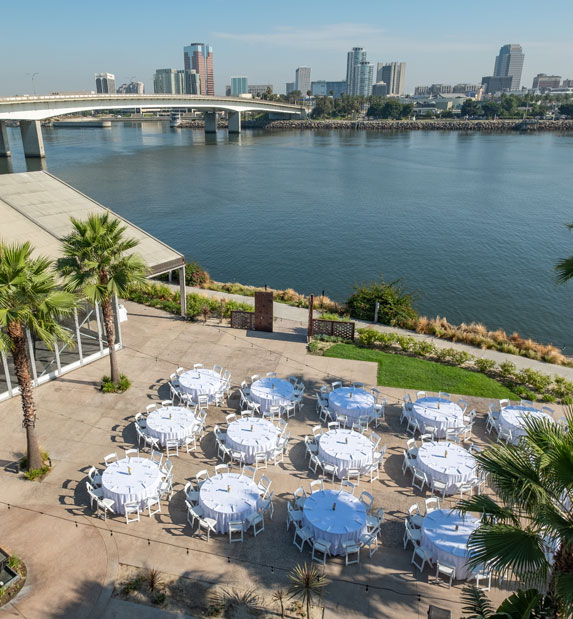 Guests can dine and drink al fresco in Fuego, the modern, Latin-infused restaurant and lounge. Fuego's expansive patio featuring stunning views include the Pacific Ocean, Long Beach skyline and Queen Mary.